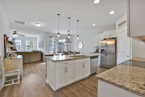 Sliding across the granite counter tops in the kitchen paired with white crisp subway tile backsplash and staggered white cabinets keeps this home looking fresh and clean.