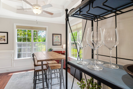 The kitchen again is the perfect space for entertaining guests. Pantry, custom built-in wine rack, and an oversized counter height island large enough for 8 guests to sit around.